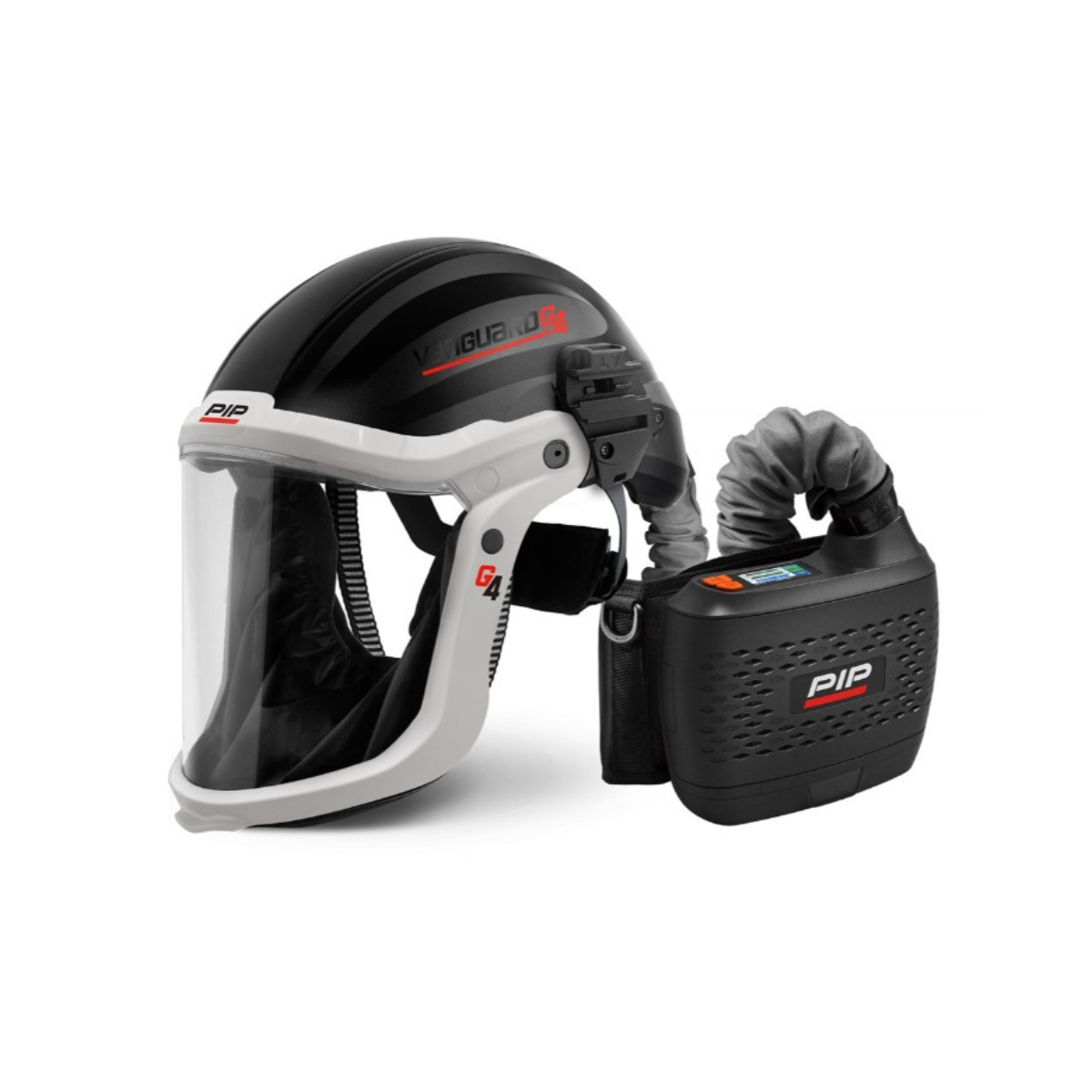 • Complete kit includes: G4V Headtop, Quick Connection Hose, Blower Unit, 3200 mAh Battery, 240V Charger, Particulate Filter, Flow Meter, Shoulder Strap, Belt Assembly, Carry/Storage Bag
